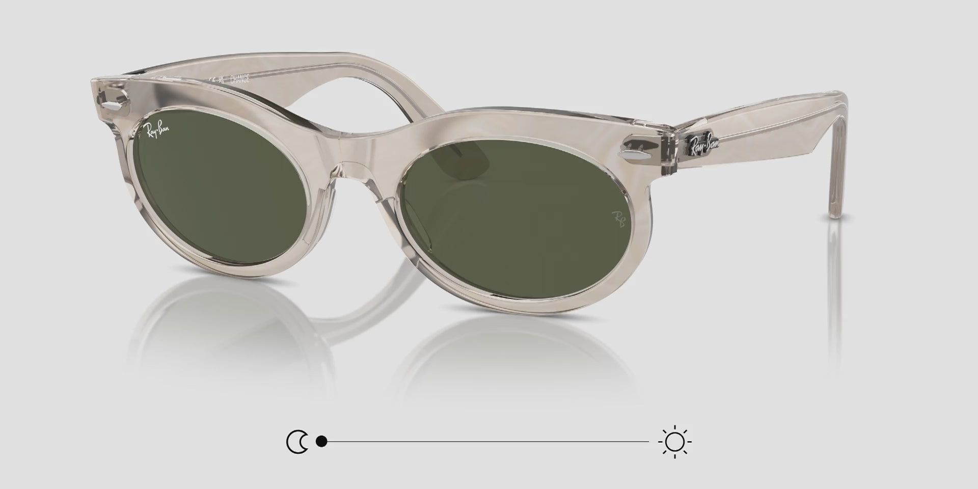 Frames that change colour with light. The iconic Wayfarer Original has been reimagined as part of the Change collection – our first series of light-responsive frames, powered by Transitions®. Sun lenses are paired with a frame featuring photochromic dyes that activate in seconds under UV. The pigments change to reveal unique striped markings and as the light gets stronger, so does the pattern.